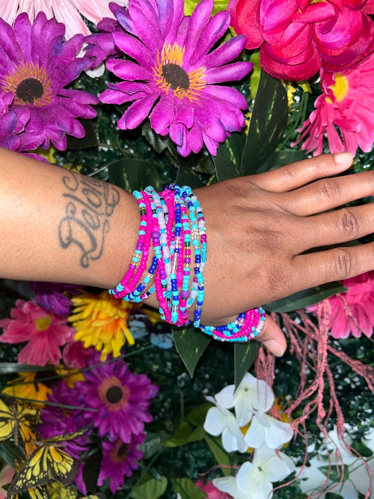 These waist beads are the perfect go to with that pretty pink, purple, or blue outfit . Comes in a set of 4 .
